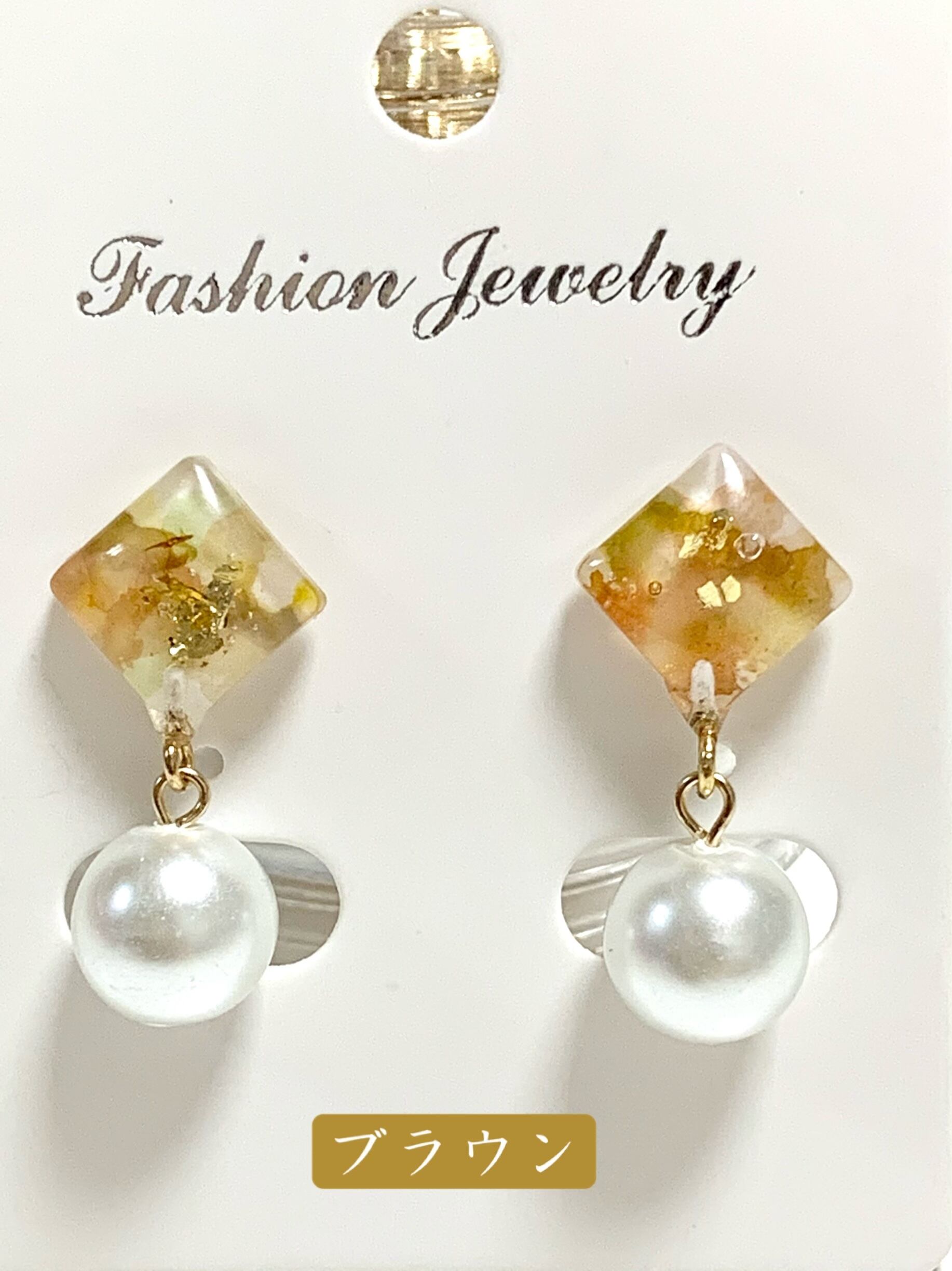 水彩風スクエアレジンにパールの付いたピアスです♡