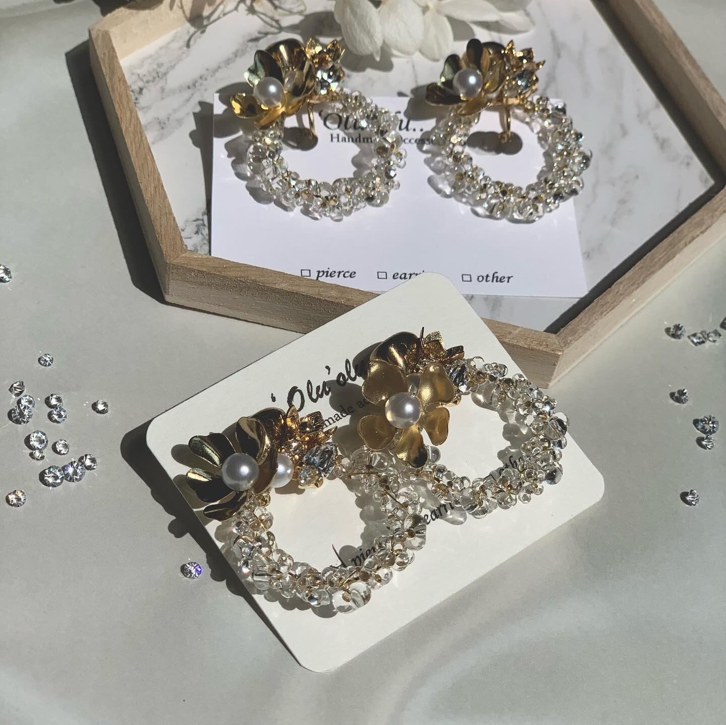 ▶︎お値段の変更なしでイヤリングのご用意もあります。注文の際は、イヤリングかピアスかを選択してください。